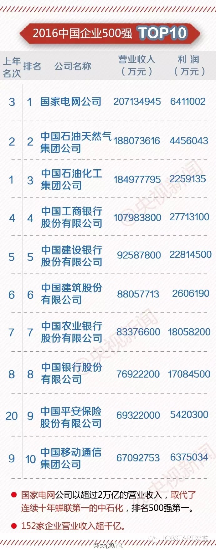 2016中國企業(yè)500強(qiáng)揭曉