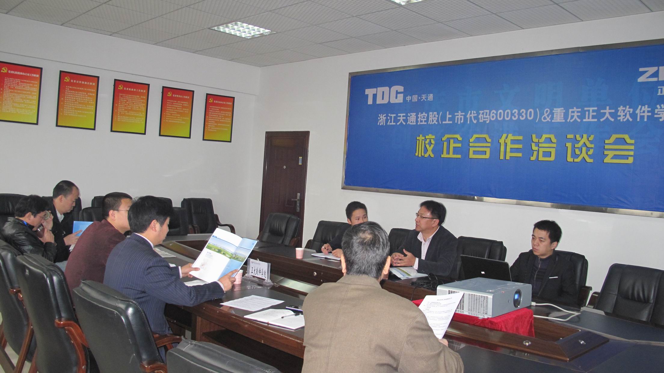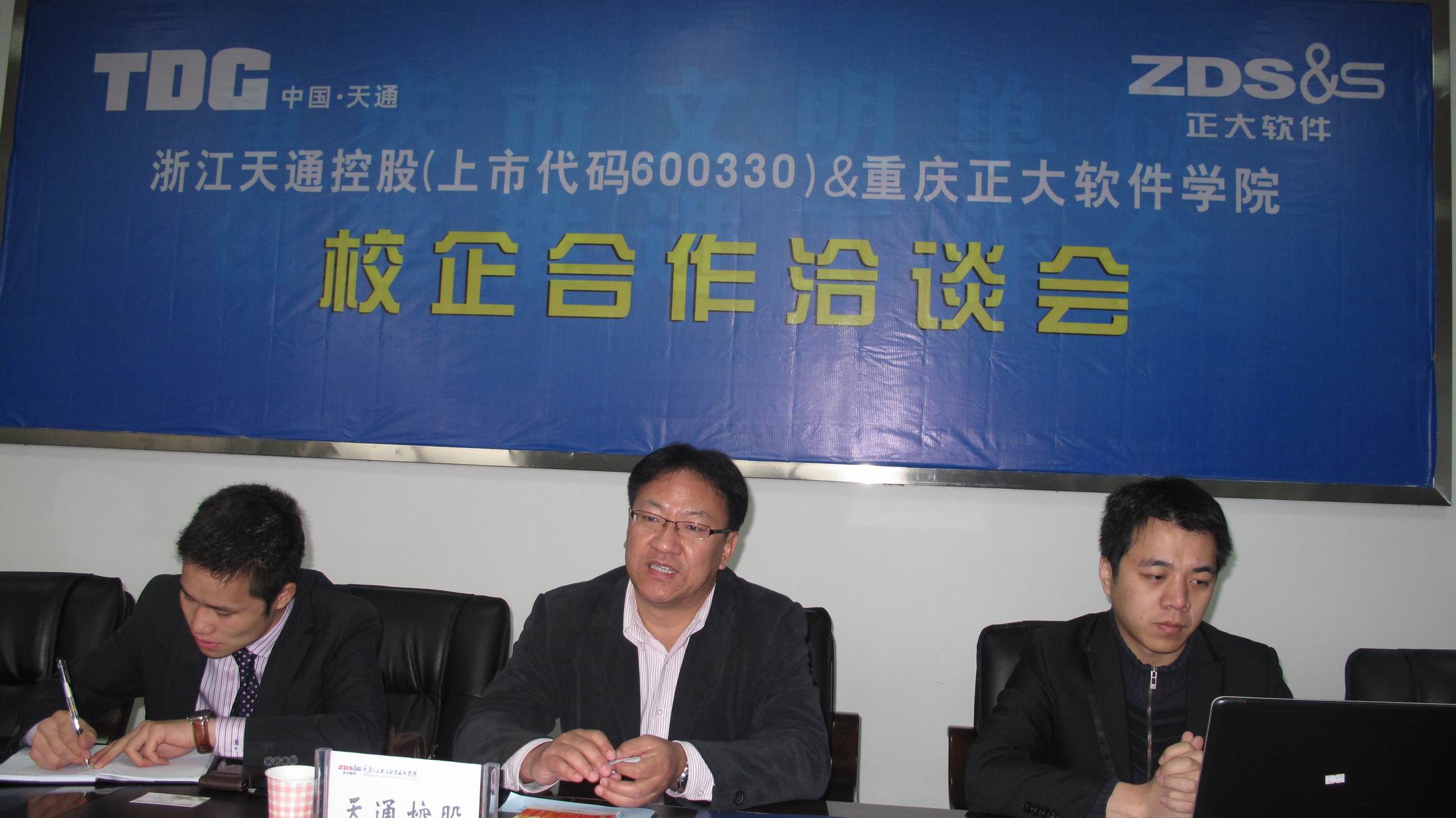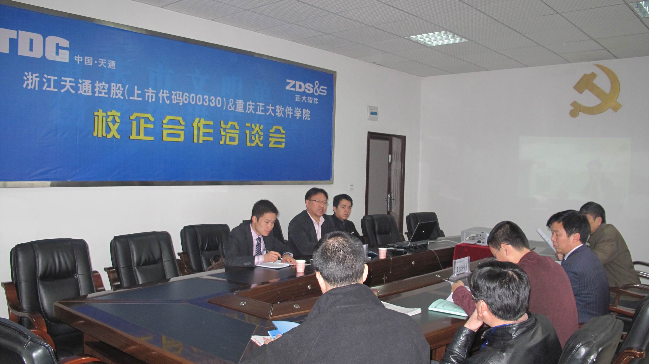 11月29日,繼“2010年浙江省嘉興市——重慶人才交流洽談會”28日舉行之后,經(jīng)過杰博公司的牽線搭橋,浙江省嘉興市最知名企業(yè)之一——天通控股(上市代碼600330)與重慶正大軟件職業(yè)技術(shù)學(xué)院校企合作洽談會在學(xué)院新區(qū)辦公大樓二樓會議室如期舉行。天通控股人力資源總監(jiān)常城、天通控股人力資源主管左宵云、我公司重慶分公司總經(jīng)理張林,學(xué)院院長助理兼學(xué)生管理服務(wù)中心主任唐小勇、學(xué)生管理服務(wù)中心副主任王建東、教務(wù)處副處長唐文登、電子信息工程系主任湯仕龍、副主任兼支部書記唐中劍出席了座談會。會議由學(xué)院學(xué)生管理服務(wù)中心副主任兼大學(xué)生就業(yè)指導(dǎo)中心主任羅質(zhì)勇主持。