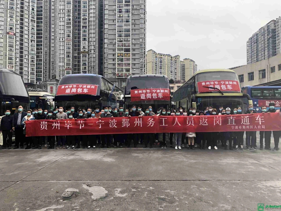 2月28日,五輛載著務(wù)工人員的返工專車從河南商丘始發(fā),將驅(qū)馳近900公里,開往浙江省寧波市鄞州區(qū),前往他們的第二故鄉(xiāng),投入到2020年的復(fù)產(chǎn)復(fù)工之中。