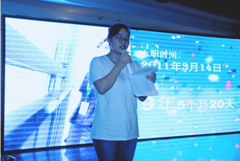 感悟環(huán)節(jié),入職一年的新員工代表米朋感嘆道:“同事們工作上比較好的方法互相分享,相互學(xué)習(xí),共同進(jìn)步。公司經(jīng)常組織大家交流,同事之間的感情越加深厚,每逢佳節(jié)公司也會給員工及員工家里的父母送上節(jié)日祝福和節(jié)日禮品。以及去年年會時(shí),悄悄錄制員工家人視頻,讓人感覺很溫馨體貼,讓我感到來到杰博是我的幸運(yùn)!”